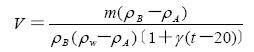 13.1 将称得的纯水质量值,通过下式求得容量值: